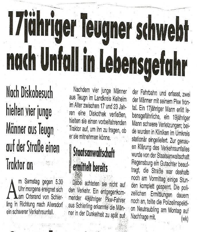 Hier ist einer der Zeitungsausschnitte, die nach dem schrecklichen Unfall in der Zeitung zu lesen waren: